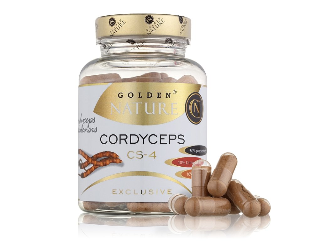 Golden Nature Exclusive Cordyceps sinensis CS-4 s deklarovaným podílem polysacharidů 50% s přídavkem betaglukanu a mannitolu pro maximální efekt.