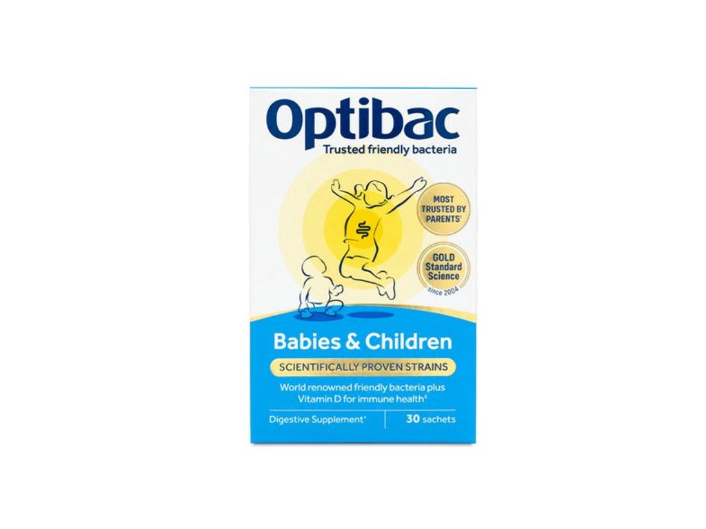 Optibac Babies & Children je určený pro podporu mikrobiomu u dětí od narození do 12 let. Obsahuje tři druhy probiotických kmenů - Bifidobacterium breve M-16V®, Lactobacillus rhamnosus GG, Lactobacillus rhamnosus HN001, které jsou vhodné pro dětský zažívací systém, prebiotikum a přidaný vitamín D3. Správně fungující zažívání je u miminek i dětí klíčem ke správnému vývoji a k pohodě dětí i rodičů. Optibac Babies & Children má neutrální chuť a vůni, a je v sáčku, je tak ideální pro přimíchání do vody nebo jakéhokoli nápoje.