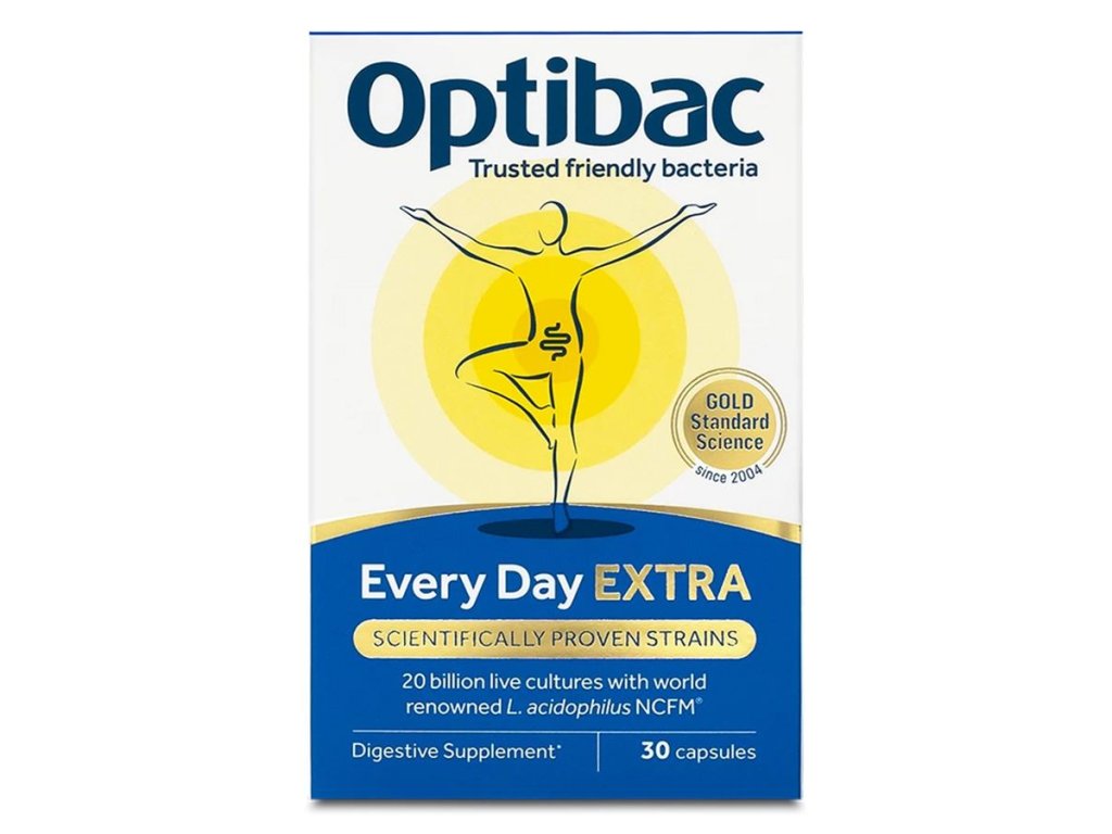 Optibac Every Day EXTRA je doplněk stravy s obsahem vysoké dávky komplexu vysoce kvalitních probiotik určeného pro každodenní podporu. Hodí se pro muže i ženy, lze jej užívat jako podporu obranného štítu, při vysoké zátěži, při rekonvalescenci, při užívání antibiotik nebo kdykoli, když cítíme, že náš zažívací trakt potřebuje pomoci. Every Day EXTRA obsahuje celkem 4 druhy probiotických kultur z kmenů Lactobacillus acidophillus NCFM®, Lactobacillus paracasei Lpc-37®, Bifidobacterium lactis BI-07®, Bifidobacterium lactis BI-04® v zesílené dávce - celkem 20 miliard v 1 kapsli. Proto se hodí pro podporu např. při náročné rekonvalescenci, při velkých obtížích apod. U všech obsažených probiotik byla ověřena schopnost projít kyselým prostředím žaludku a dostat se až do střeva.